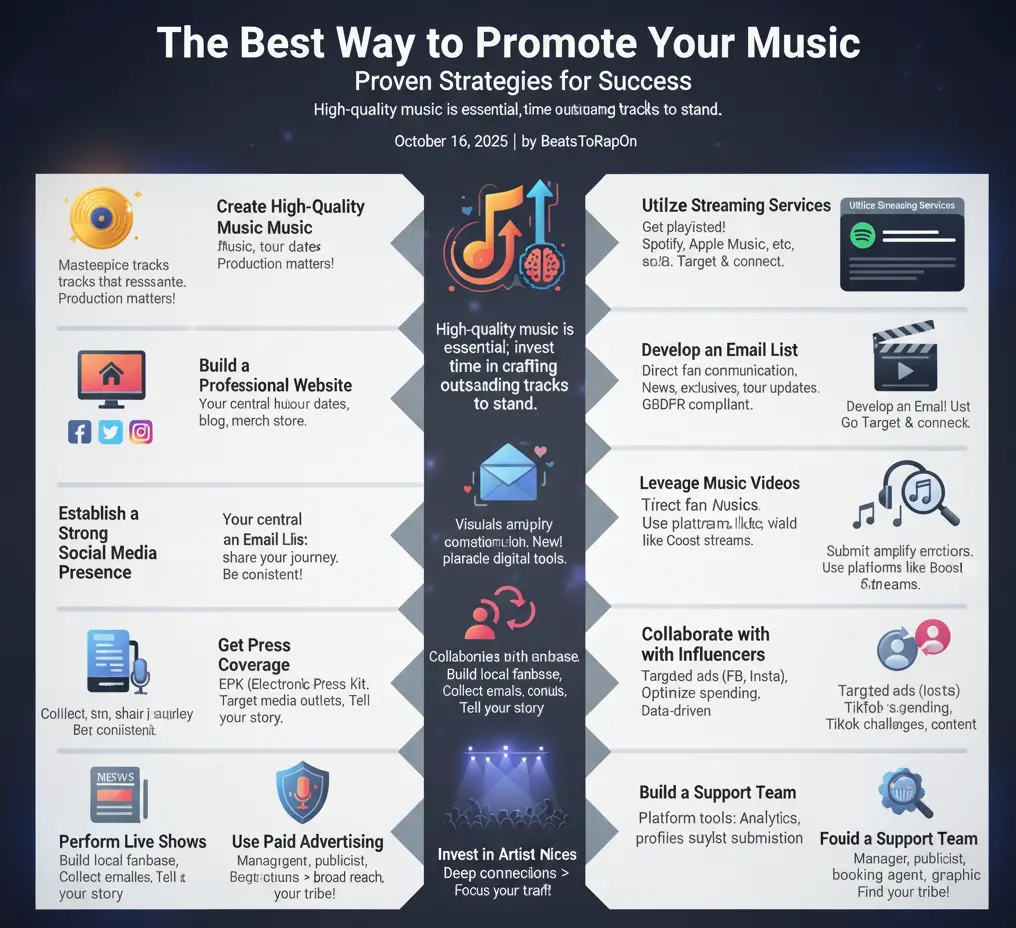 Searching for the best way to promote your music? This guide offers clear strategies like using social media, streaming services, and live shows to grow your audience.