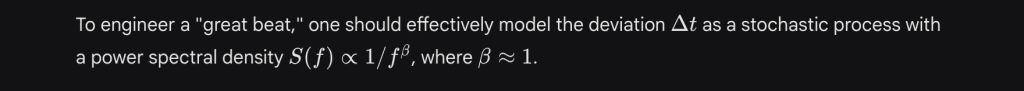 However, analysis of professional drummers (e.g., Jeff Porcaro, Clyde Stubblefield) reveals that their timing fluctuations are not random white noise (uncorrelated). Instead, they exhibit $1/f$ noise (pink noise), also known as fractal noise. This implies a long-range correlation structure: if a drummer plays slightly ahead of the beat now, they are statistically likely to continue that trend for a duration before correcting. This “autocorrelated” error sounds organic and cohesive to the human brain, whereas the white noise generated by standard DAW randomizers sounds “jittery” or disconnected.